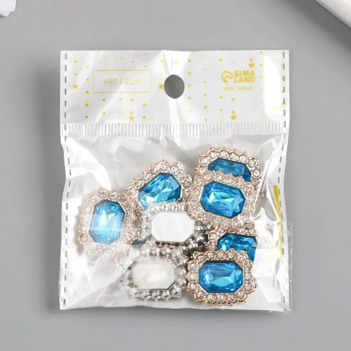 Декор для творчества пластик, стразы "Медальон восьмиугольный" н-р 10 шт голубой 1,8х2,4 см — Характеристики