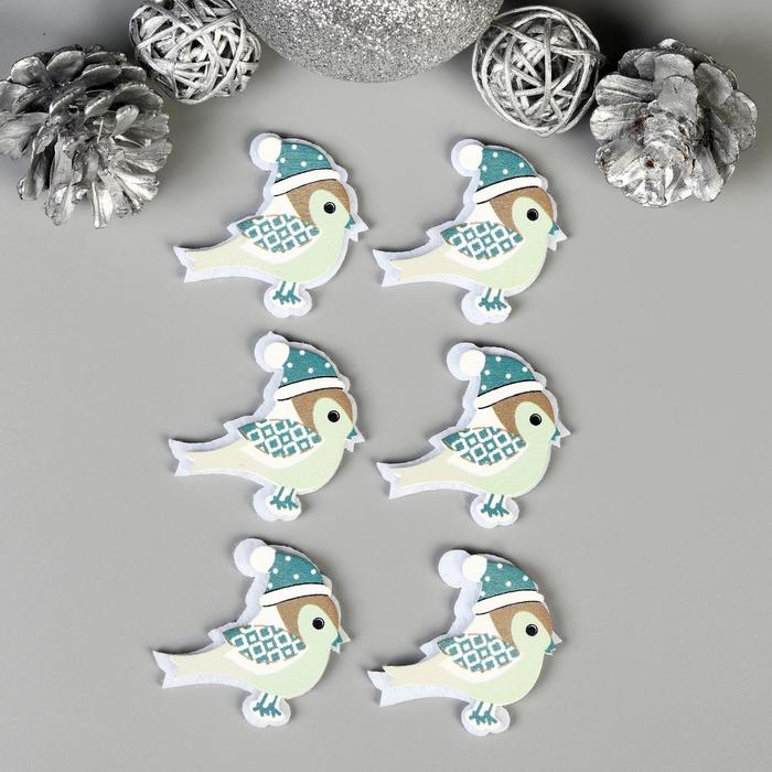 Декор для творчества дерево, войлок "Воробушек в шапочке" набор 6 шт 4,2х4,2 см