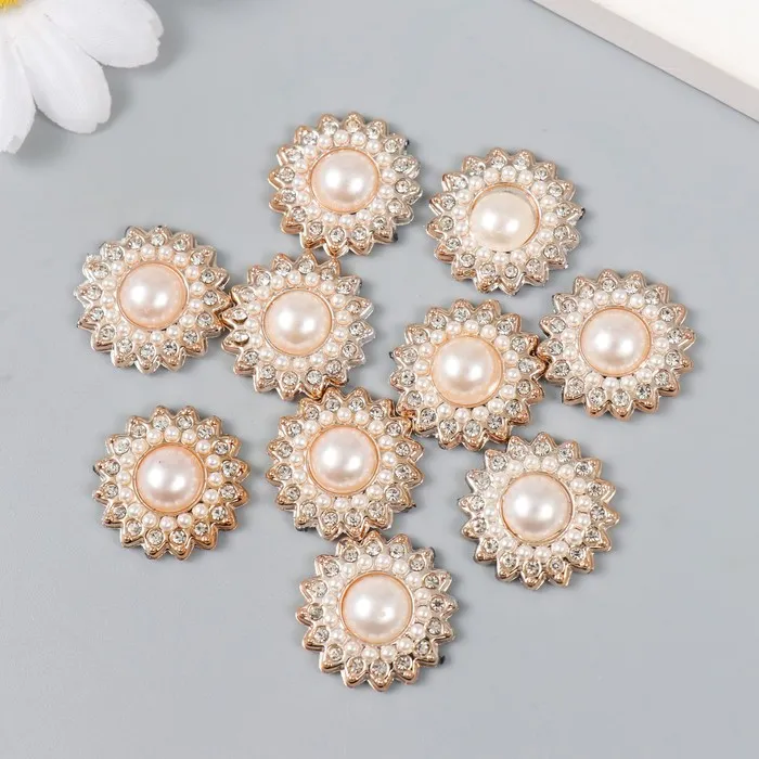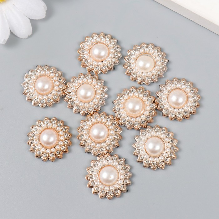Декор для творчества пластик, стразы "Жемчужная астра" набор 10 шт 2х2 см