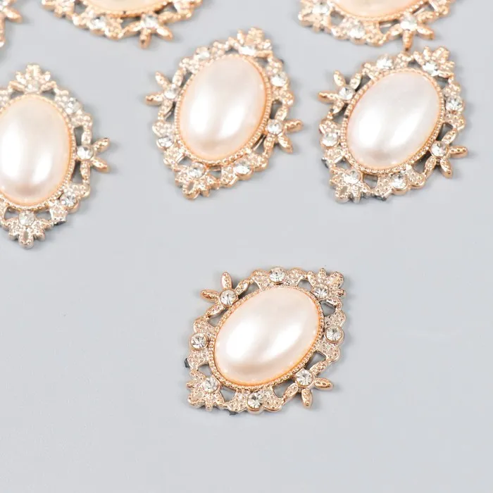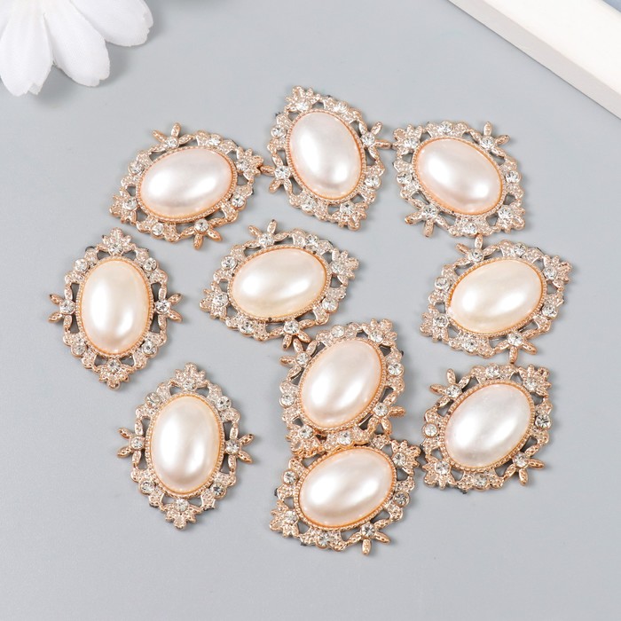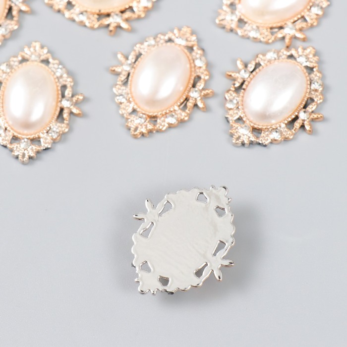 Декор для творчества металл «Медальон овал в золотой оправе», жемчужина, 2.7×2.3×0.6 см