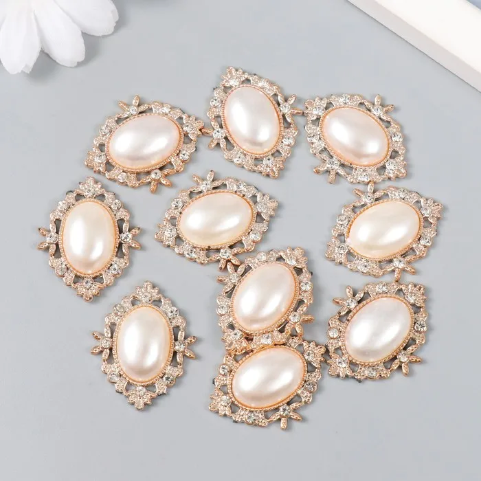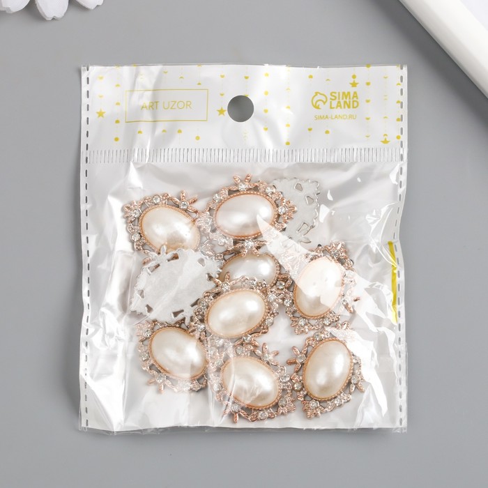 Декор для творчества пластик, стразы "Жемчужный овал в цветах" набор 10 шт 2,3х3,2 см — Характеристики