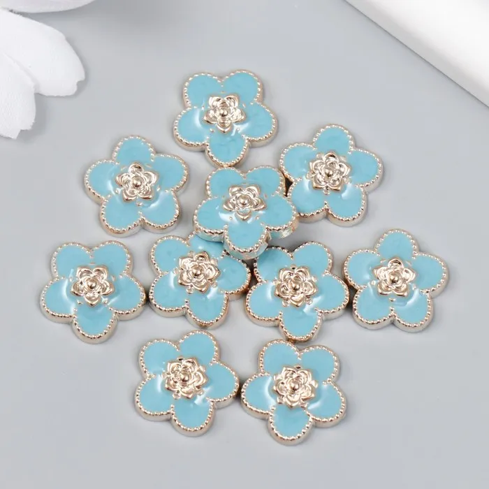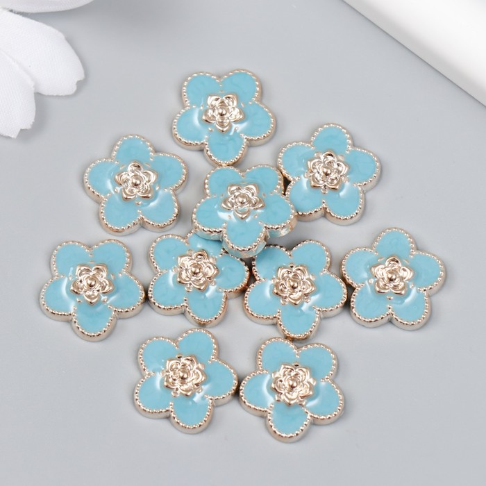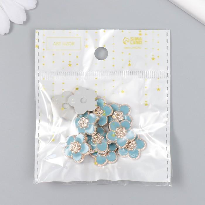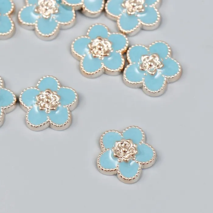 Декор для творчества пластик «Цветочек», голубой, золото, 0.3×1.8×1.8 см