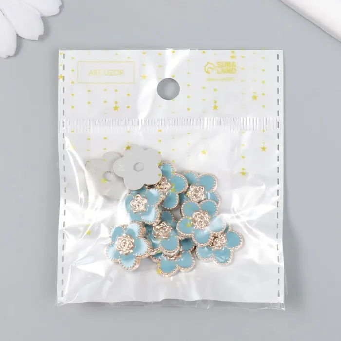 Декор для творчества пластик «Цветочек», голубой, золото, 0.3×1.8×1.8 см — Характеристики
