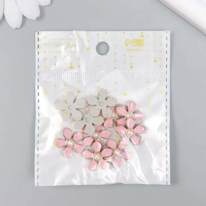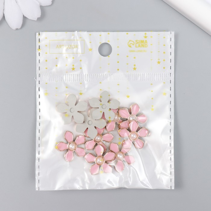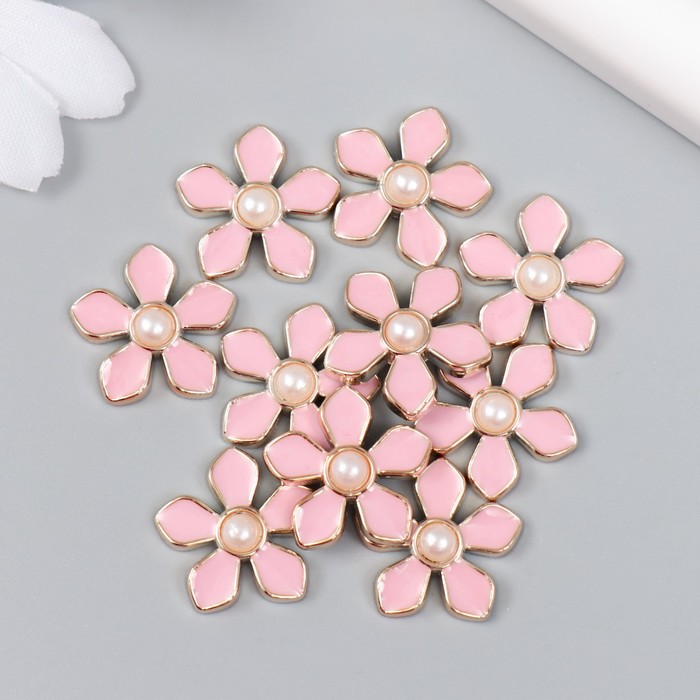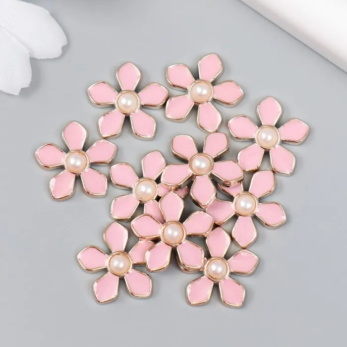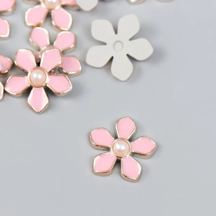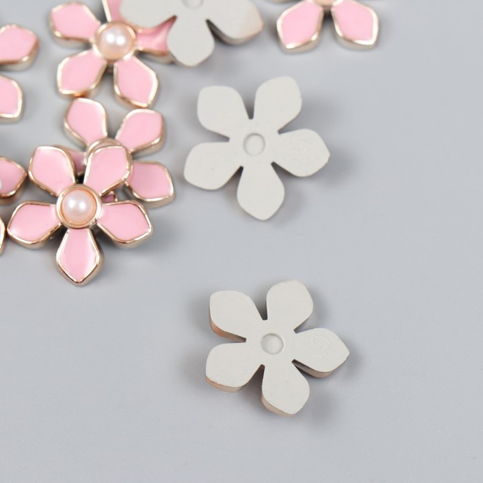 Декор для творчества пластик «Цветочек с жемчужиной», розовый, золото, 0.3×1.8×1.8 см