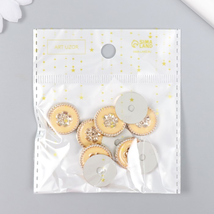 Декор для творчества пластик «Цветочек в круге», жёлтый, золото, 0.3×1.8×1.8 см