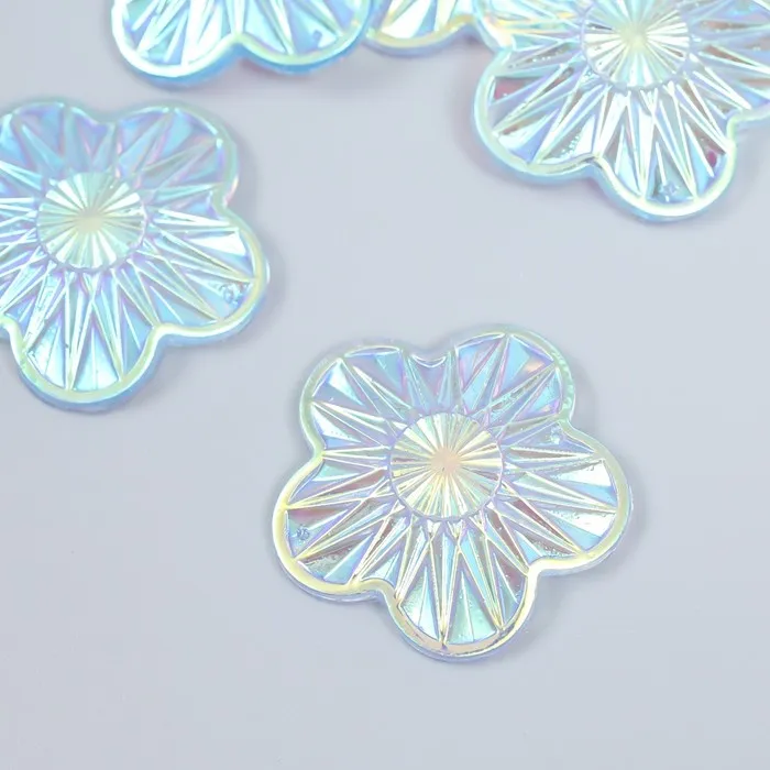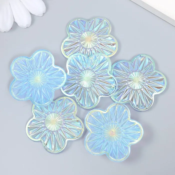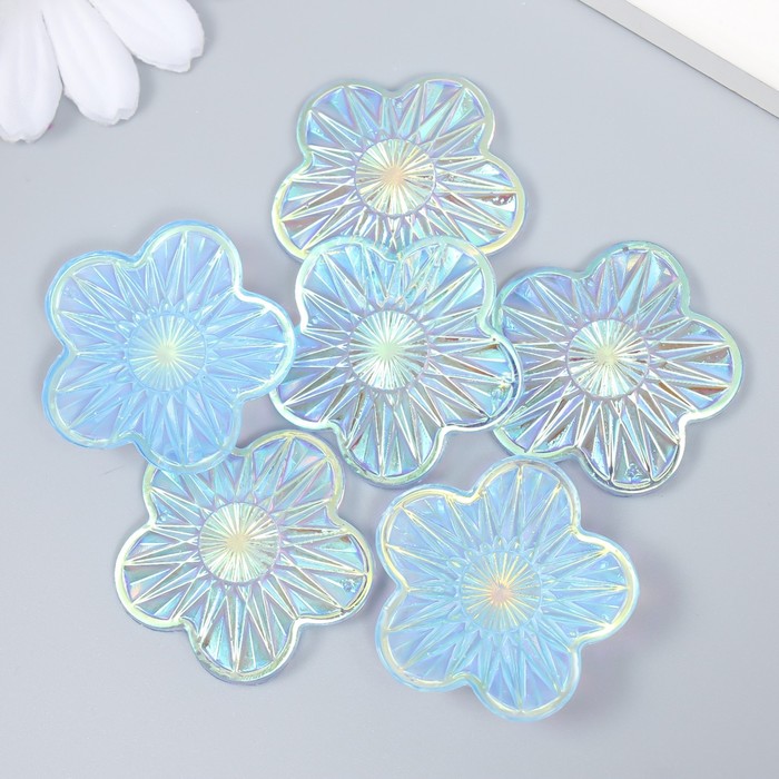 Декор для творчества пластик «Цветок», голография перламутр, набор 6 шт., 3.5×3.5 см