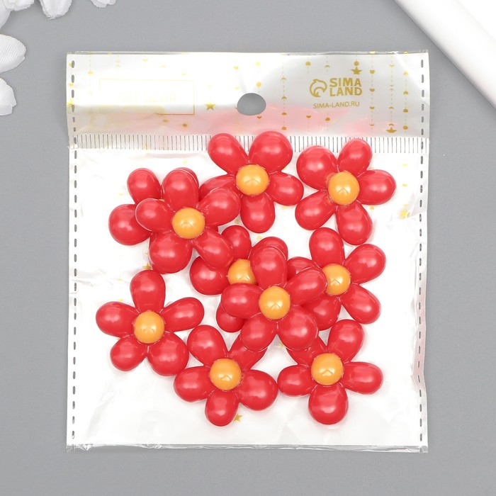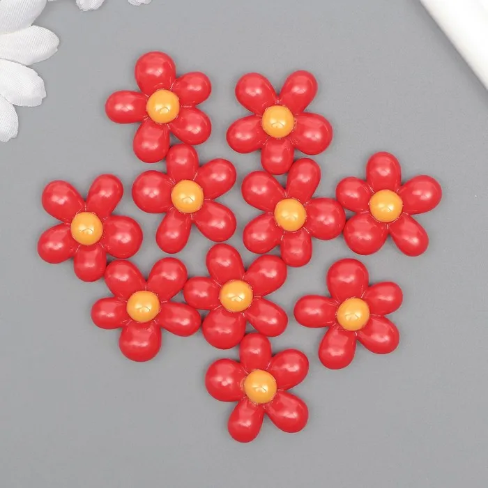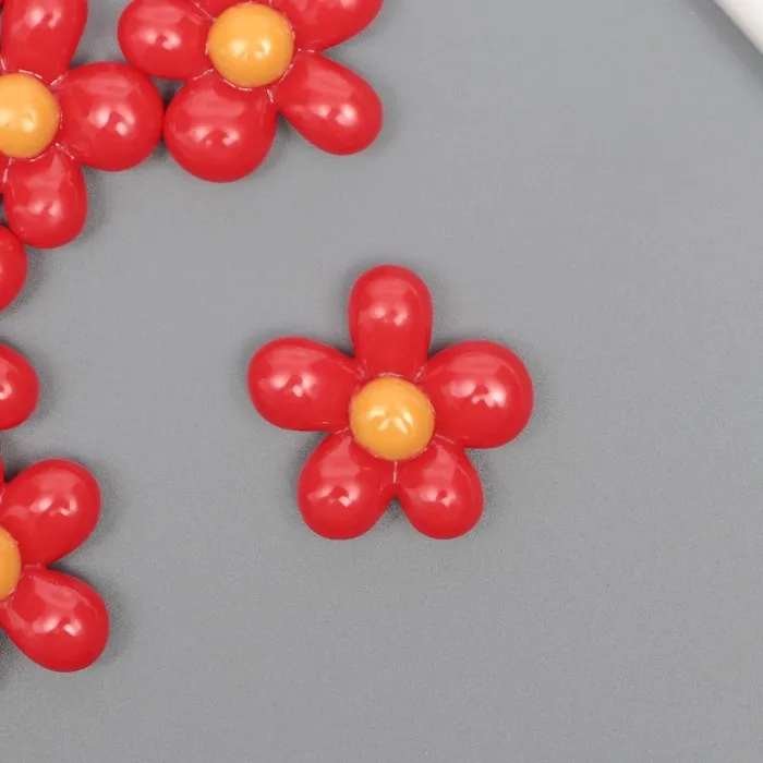 Декор для творчества пластик «Цветок красный с жёлтым», 2.8×3×1 см — Характеристики