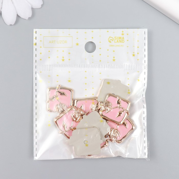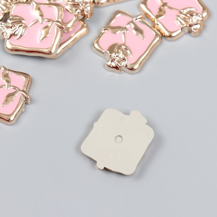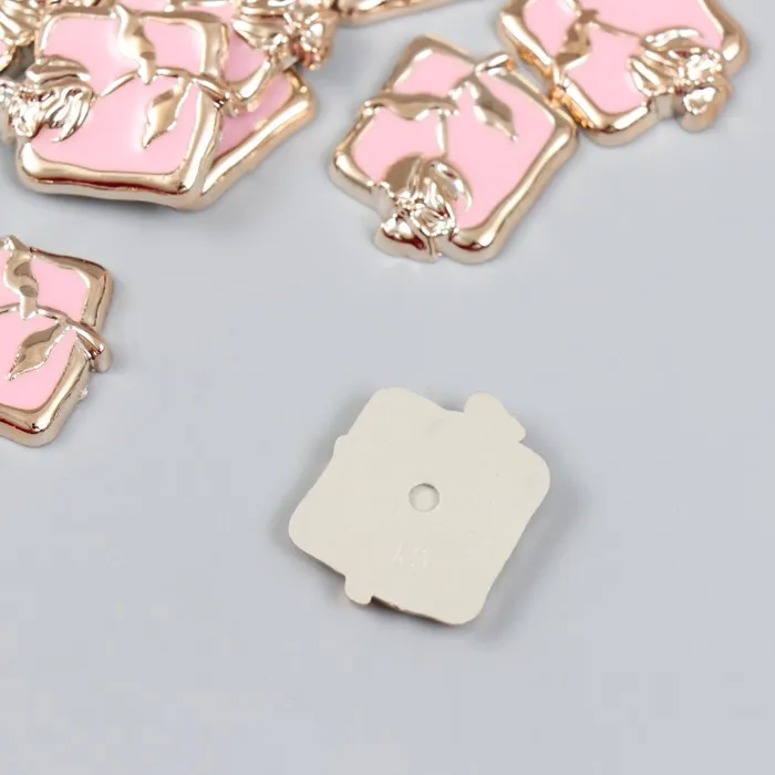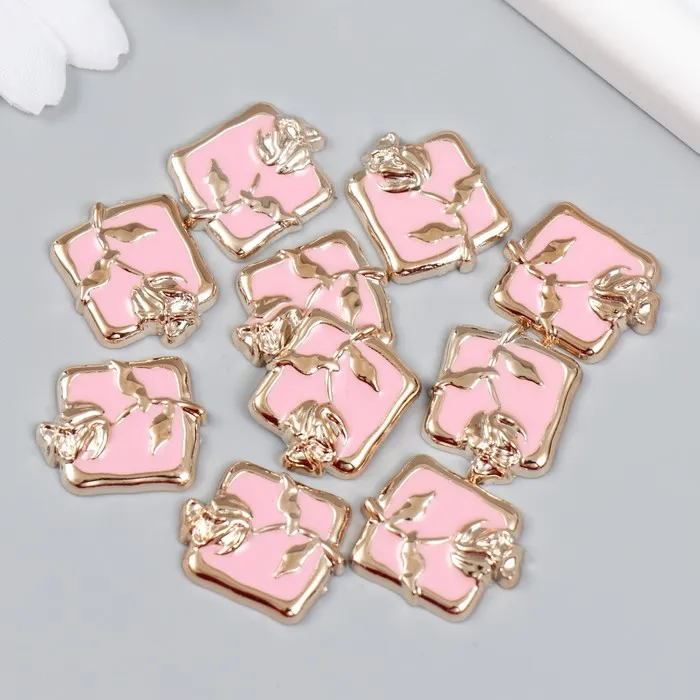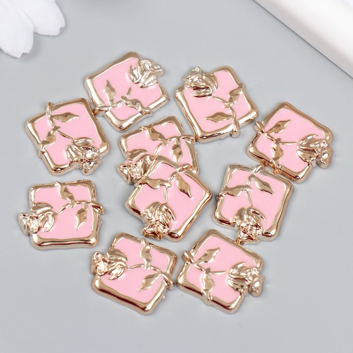 Декор для творчества пластик «Цветок розы в квадрате», розовый, золото, 0.3×1.9×2.3 см