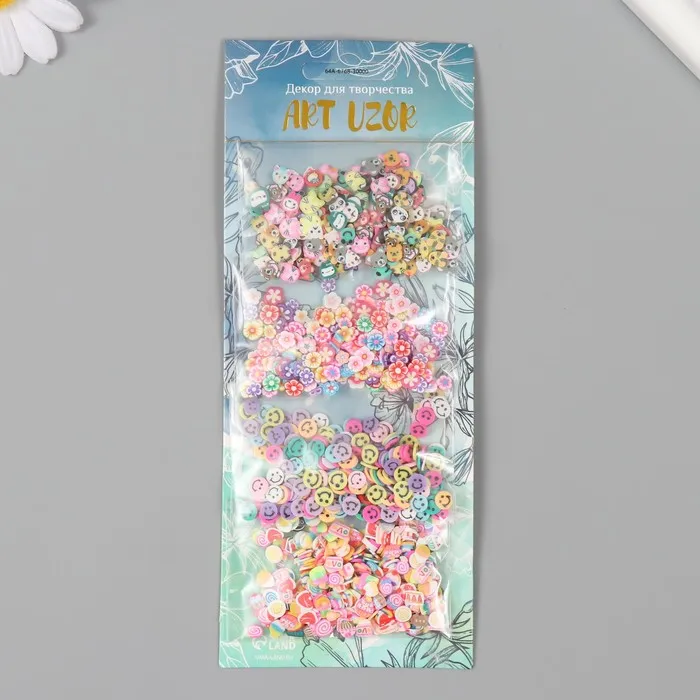 Декор для творчества пластик «Цветы и сладости», набор 4 вида × 5 г, 8×20 см — Характеристики