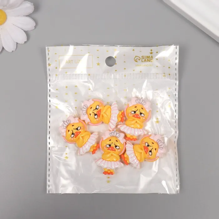 Декор для творчества пластик «Утёнок в юбочке», набор 5 шт., 3.1×2.5×1 см