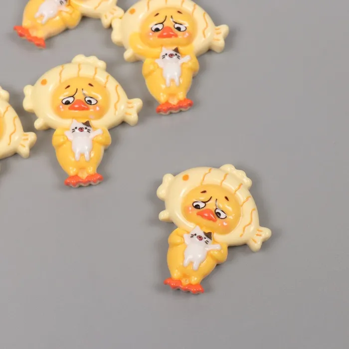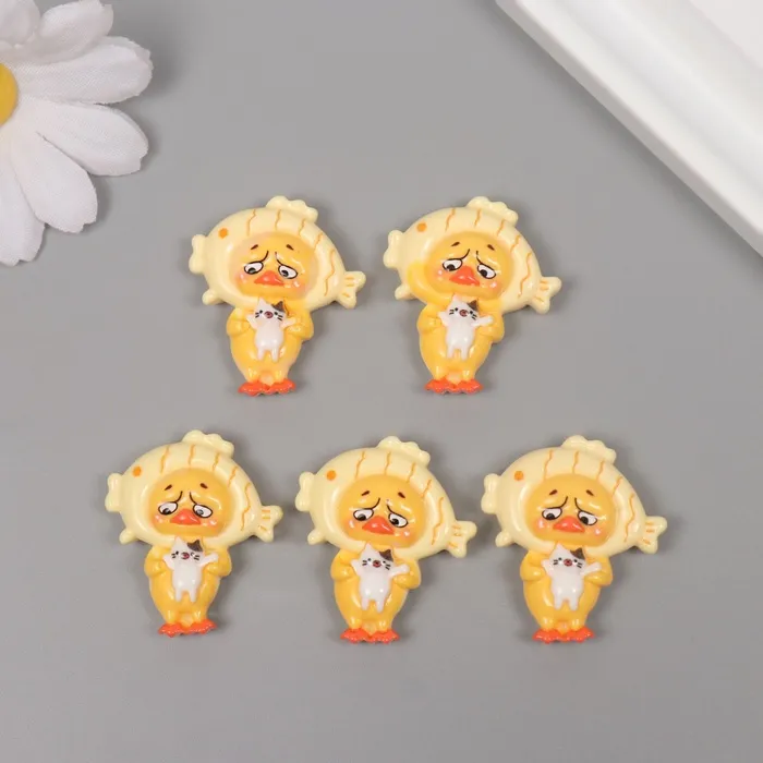 Декор для творчества пластик «Утёнок в шапке-рыбке», набор 5 шт., 3.3×2.8×1 см