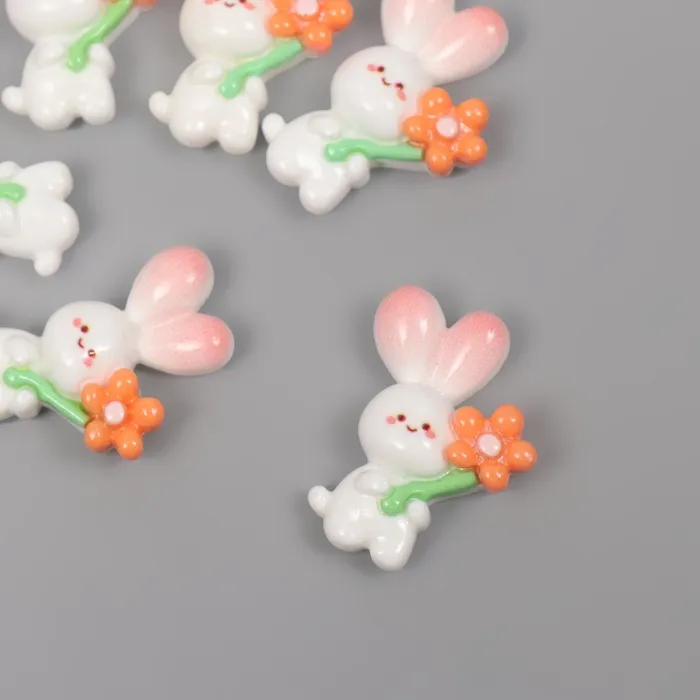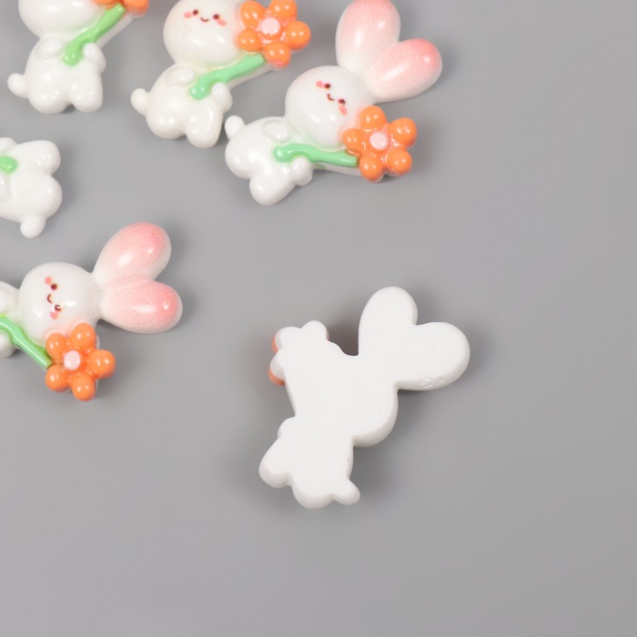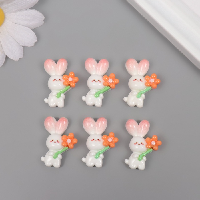 Декор для творчества пластик "Зайка держит цветок" набор 6 шт 2,5х1,5х1 см