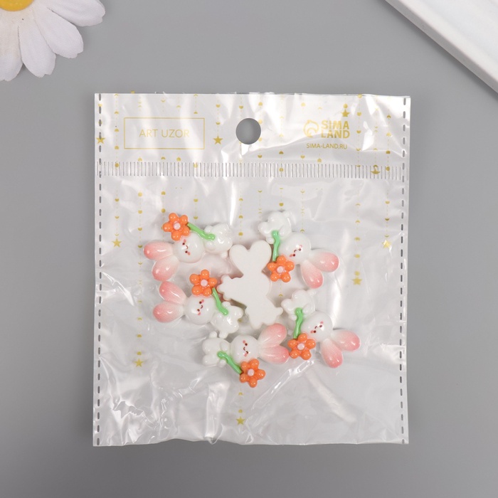 Декор для творчества пластик "Зайка держит цветок" набор 6 шт 2,5х1,5х1 см — Характеристики