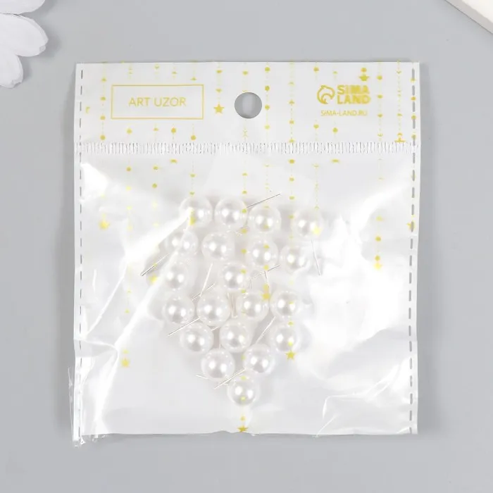 Декор для творчества пластик «Жемчужный шарик со штырьком», 1×1 см, набор 20 шт.
