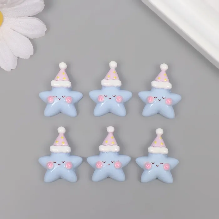 Декор для творчества пластик «Звездочка в колпаке», набор 6 шт., 2.7×2.5×0.8 см