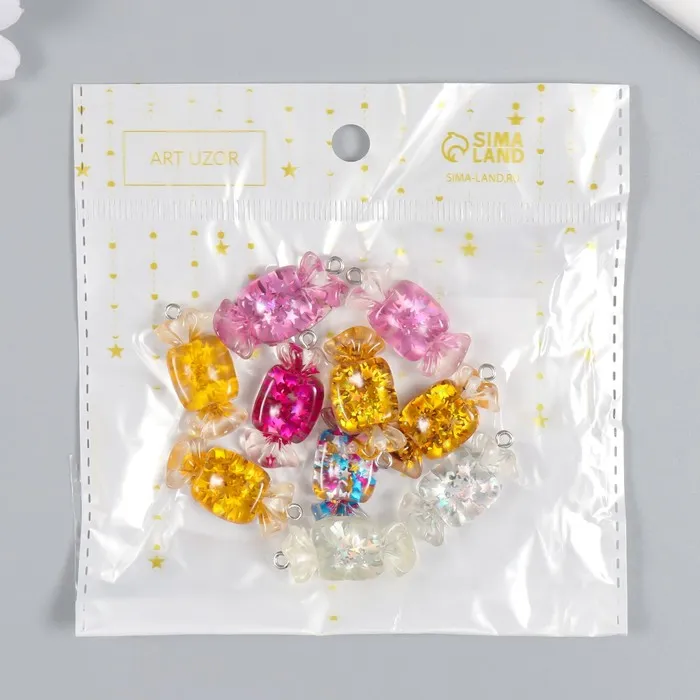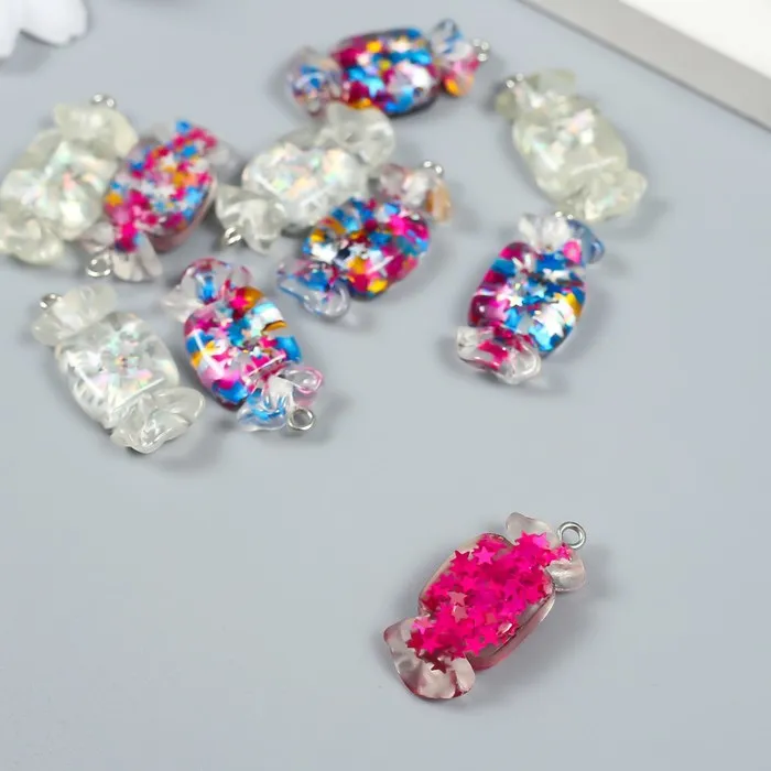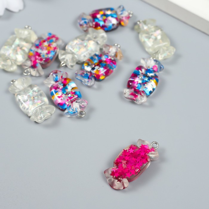 Декор для творчества пластик «Звёздная конфетка с петелькой», 0.4×1.3×2.8 см, МИКС — Характеристики