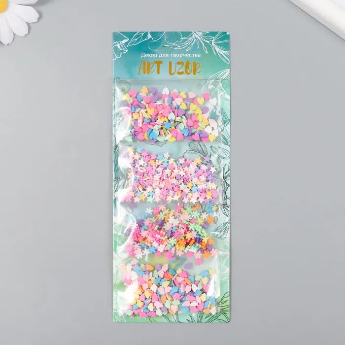 Декор для творчества пластик «Звёзды, облака, снежинки», набор 4 вида × 5 г, 8×20 см — Характеристики