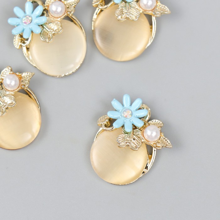 Декор для творчества металл «Кошачий глаз с незабудкой», жемчужина, золото, 0.8×2×2.1 см