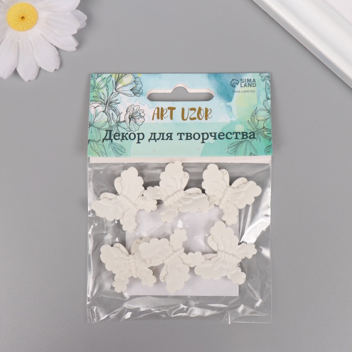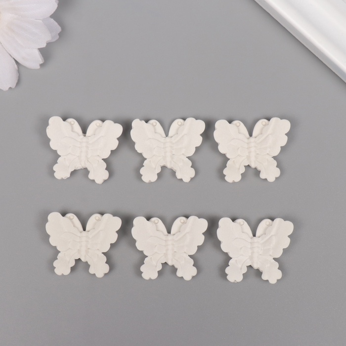 Декор для творчества полистоун «Бабочки», белый, набор 6 шт., 2.7×2.5 см