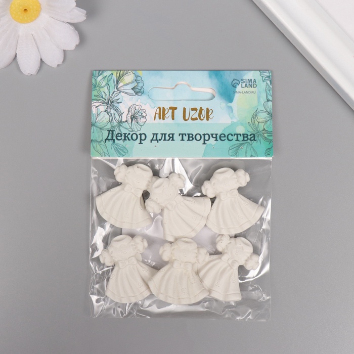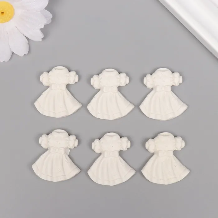 Декор для творчества полистоун «Платье с бантиком», белый, набор 6 шт., 2.7×3 см
