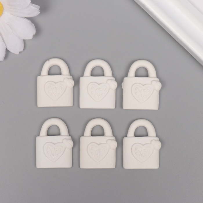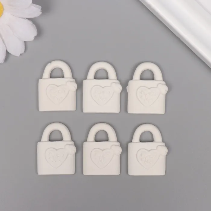 Декор для творчества полистоун «Замочек с сердечком», белый, набор 6 шт., 2×3 см