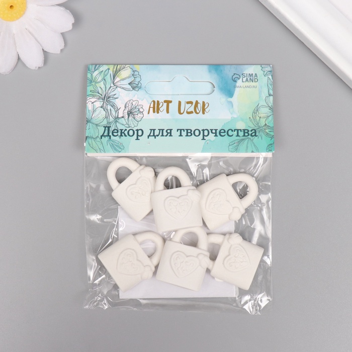 Декор для творчества полистоун «Замочек с сердечком», белый, набор 6 шт., 2×3 см — Характеристики