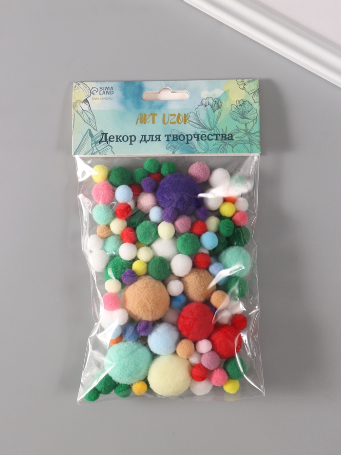 Декор для творчества «Помпончики. Яркость», d=1-3 см, набор 135 шт. — Характеристики