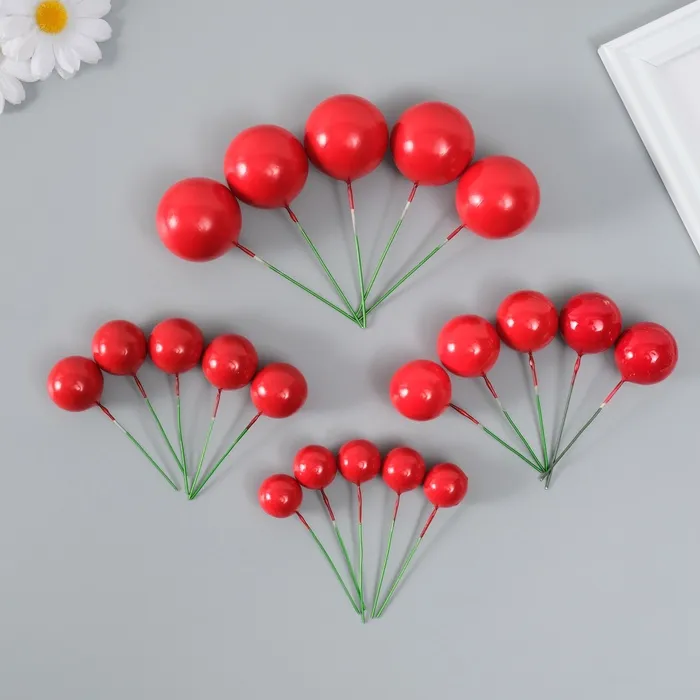Декор для творчества «Шарики красные», d=2; 3; 3.5 и 4 см, набор 20 шт.