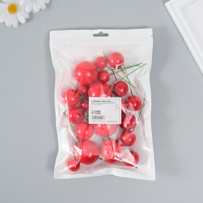 Декор для творчества «Шарики красные», d=2; 3; 3.5 и 4 см, набор 20 шт. — Характеристики