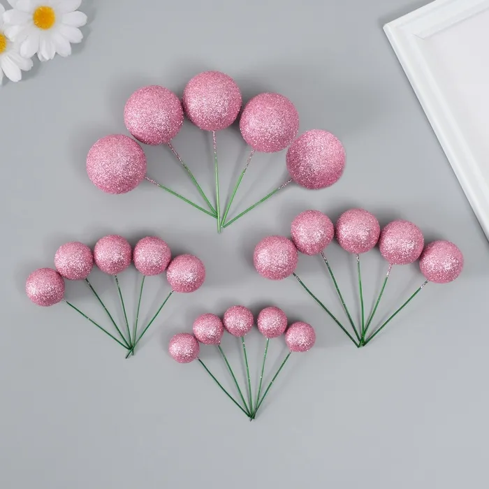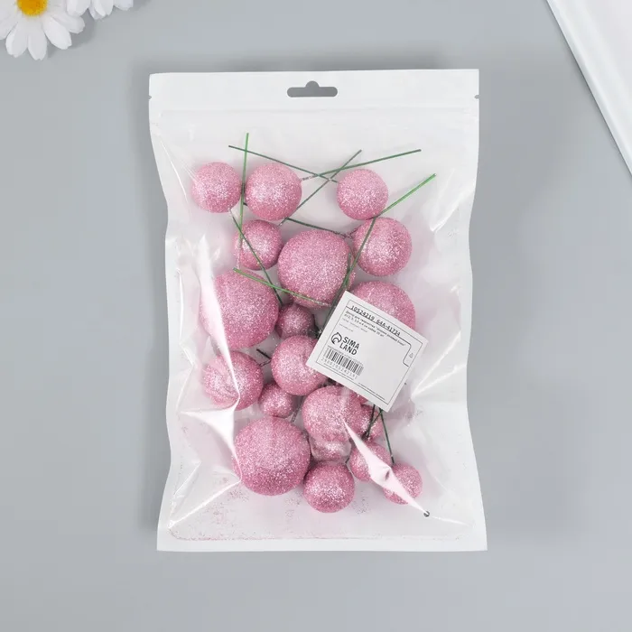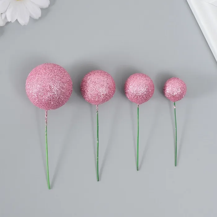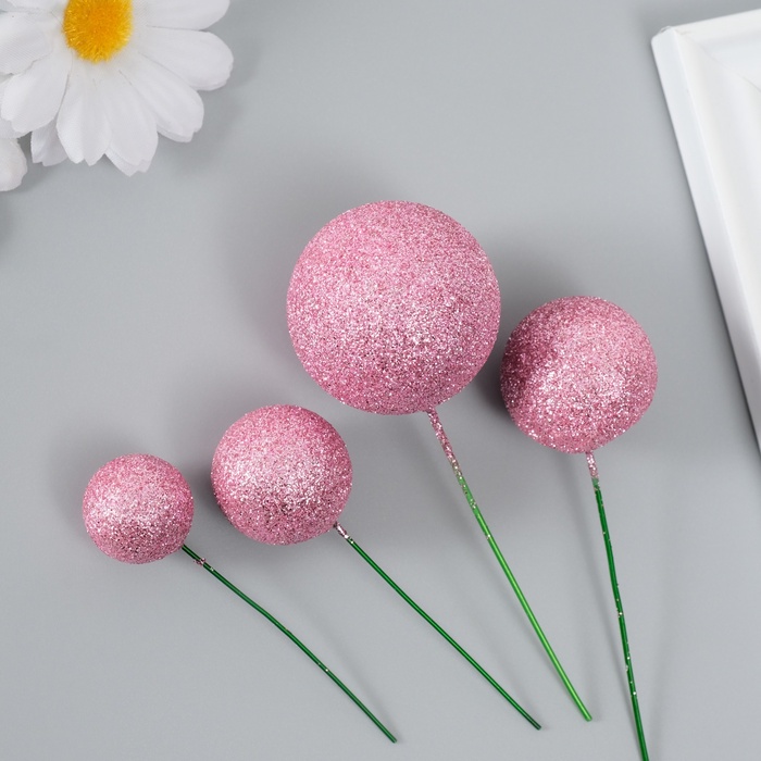 Декор для творчества «Шарики розовый блеск», d=2; 3; 3.5 и 4 см, набор 20 шт. — Характеристики