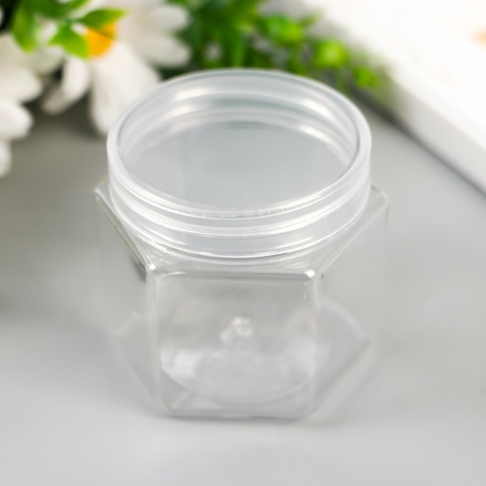 Баночка для хранения декора «Грани», пластик, 110 мл, прозрачная, 5.5×6.5×6.5 см
