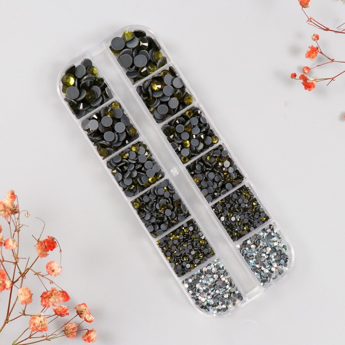 Декор для творчества стекло «Стразы усечённый конус. Оливковый», d=2-6.5 мм, набор 2600 шт.