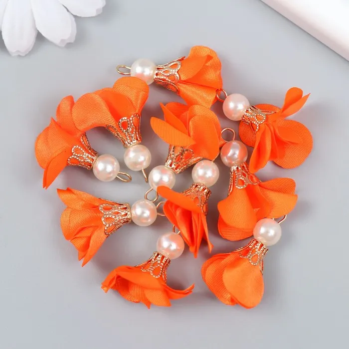 Декор для творчества текстиль «Цветок с жемчужиной. Алый», набор 10 шт., 2.5 см — Характеристики