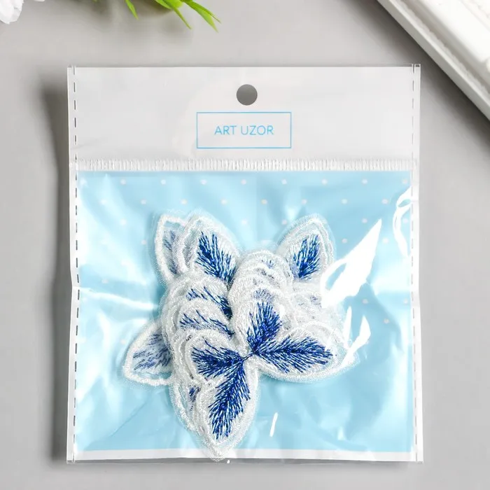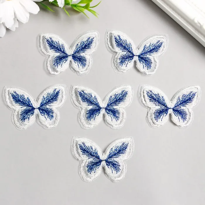 Декор для творчества текстиль вышивка «Бабочка бело-синяя», двойные крылья, 3.7×4.5 см — Характеристики