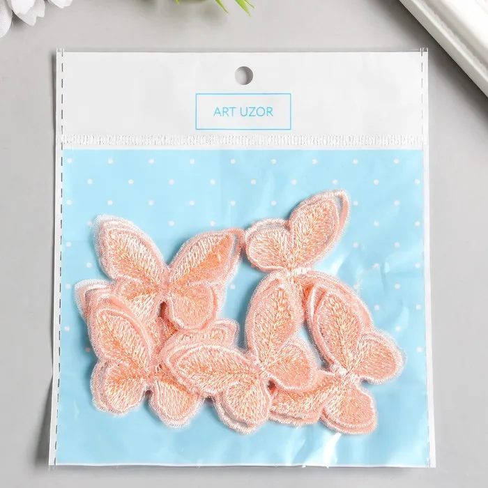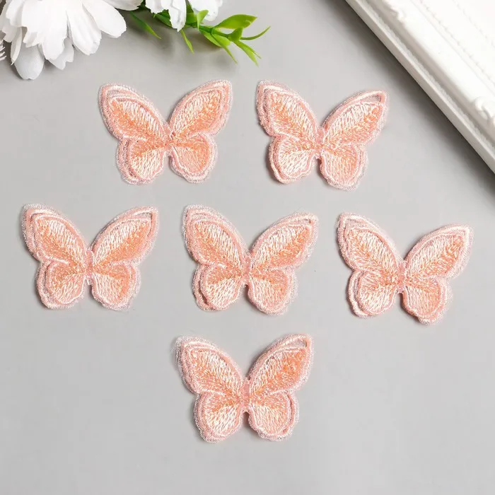 Декор для творчества текстиль вышивка «Бабочка персиковая», двойные крылья, 3.7×4.5 см — Характеристики