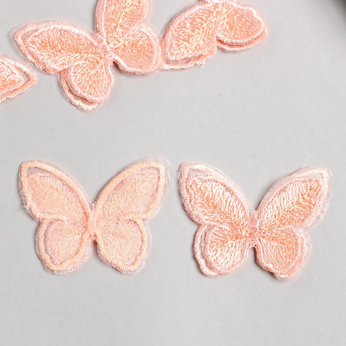 Декор для творчества текстиль вышивка «Бабочка персиковая», двойные крылья, 3.7×4.5 см