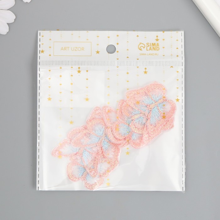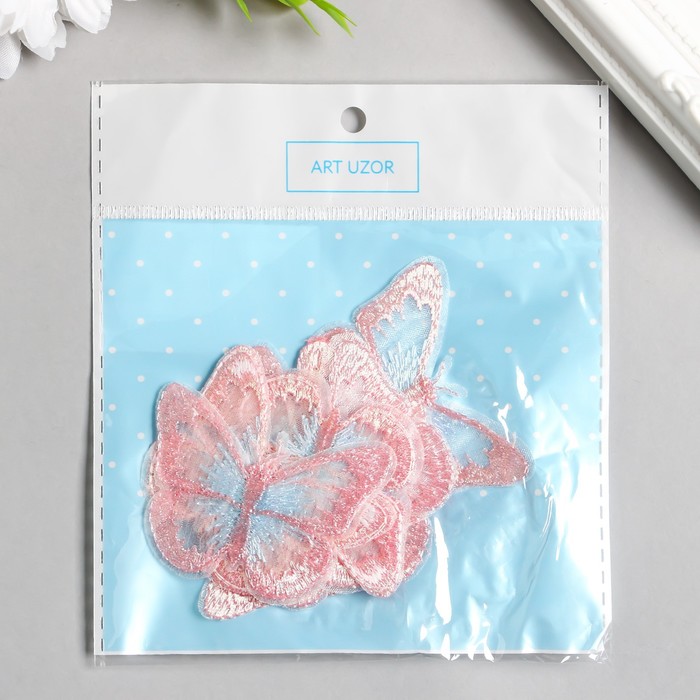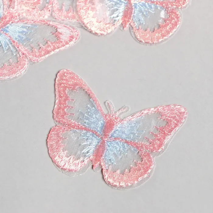 Декор для творчества текстиль вышивка «Бабочка розово-голубая», 4.3×5.5 см