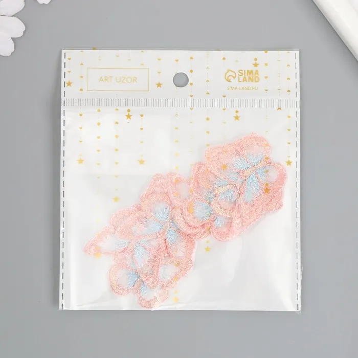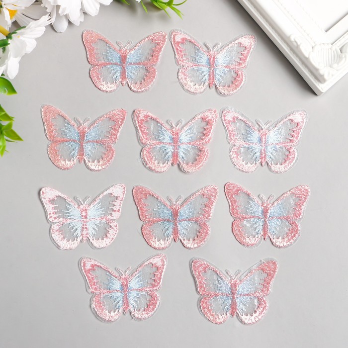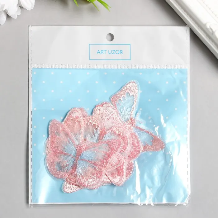 Декор для творчества текстиль вышивка «Бабочка розово-голубая», 4.3×5.5 см — Характеристики