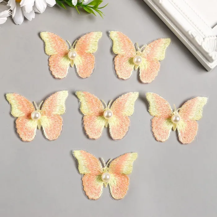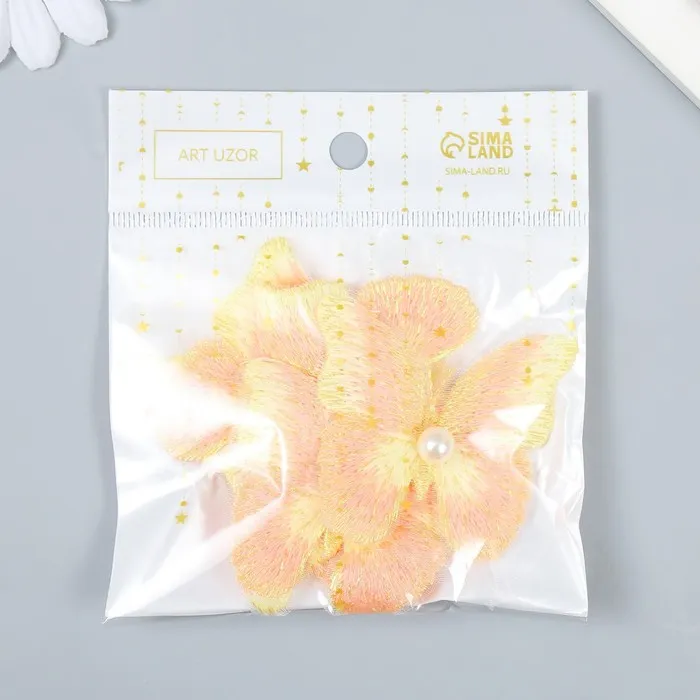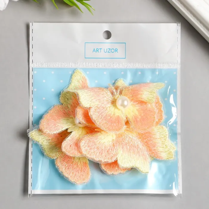 Декор для творчества текстиль вышивка «Бабочка жёлто-оранжевая», двойные крылья, 5×6 см — Характеристики