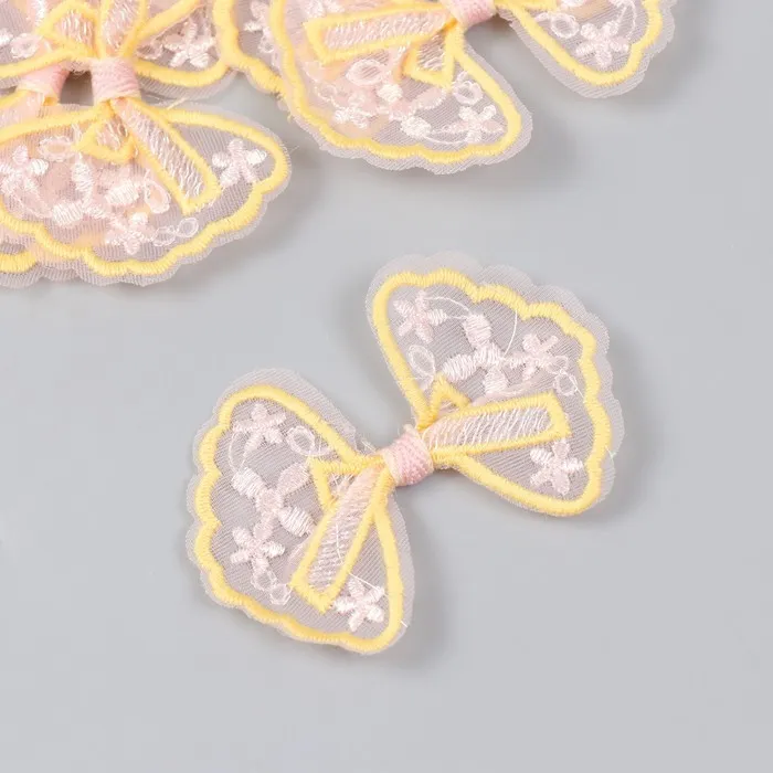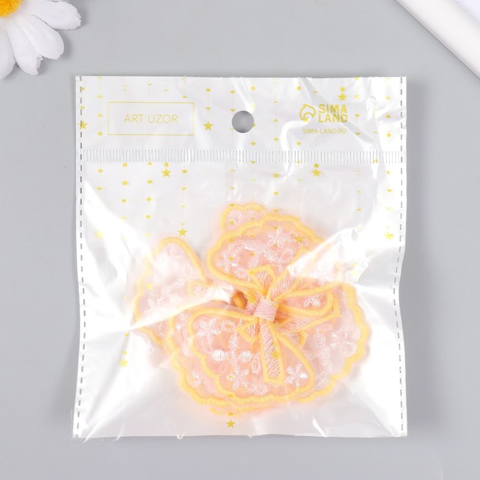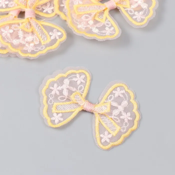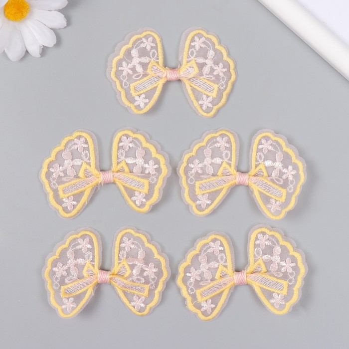 Декор для творчества текстиль вышивка «Бантик в цветочках жёлто-белый», 7×5.5 см — Характеристики