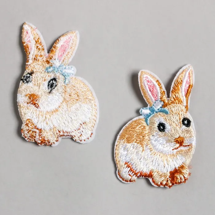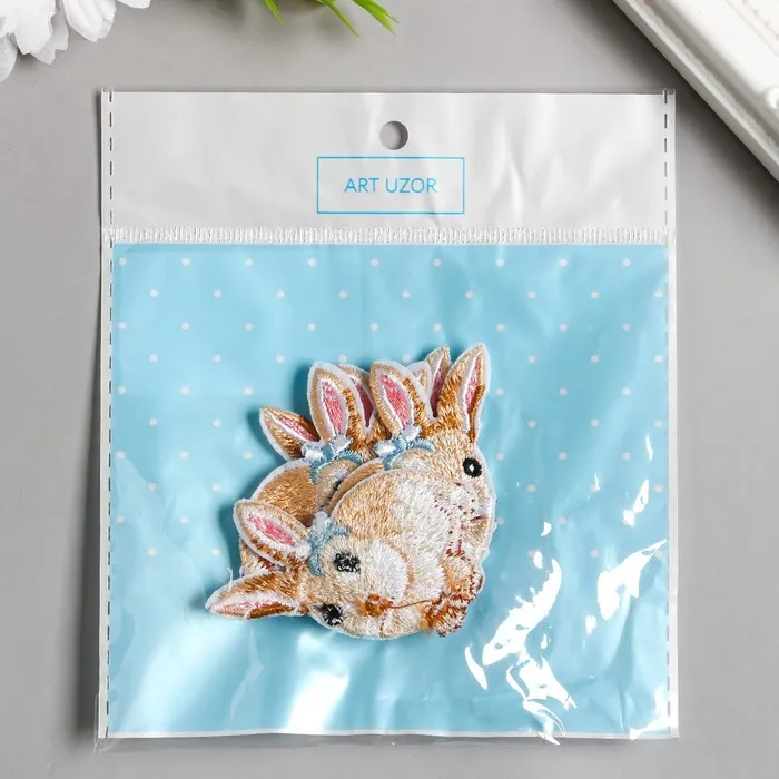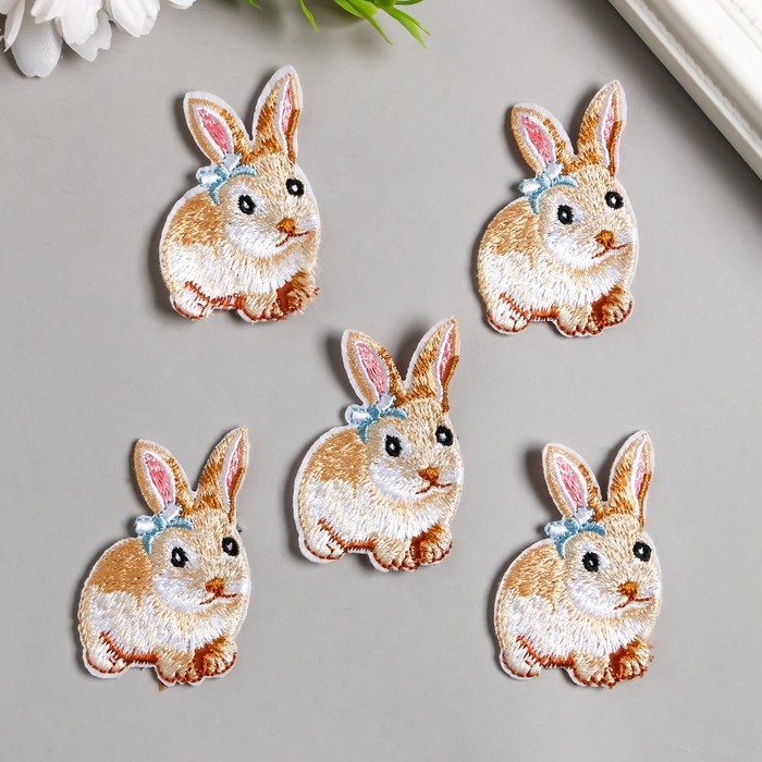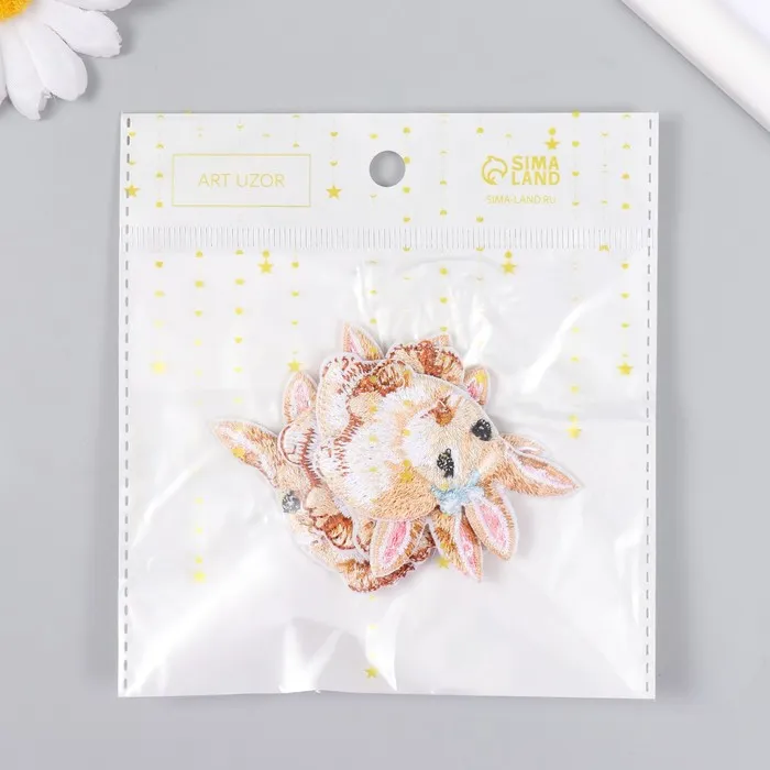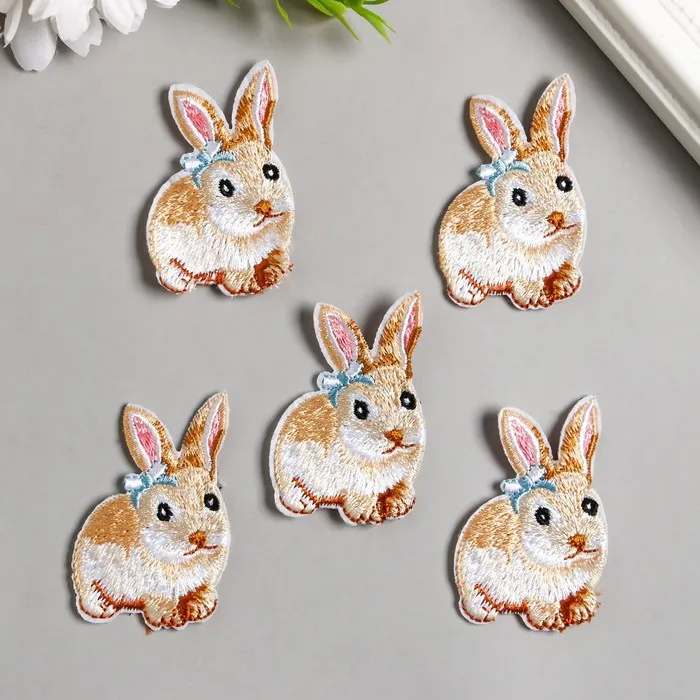 Декор для творчества текстиль вышивка «Кролик с бантиком на ушке», 3.8×5 см — Характеристики