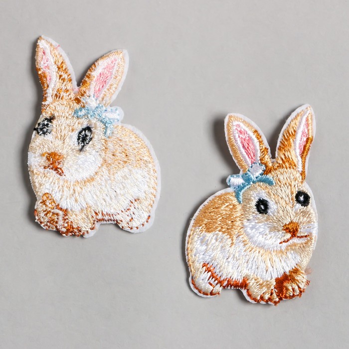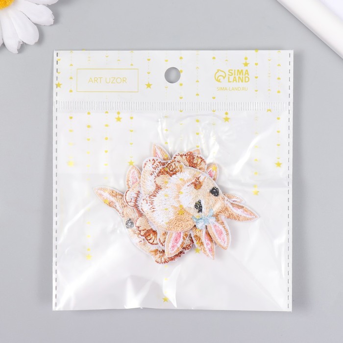 Декор для творчества текстиль вышивка «Кролик с бантиком на ушке», 3.8×5 см