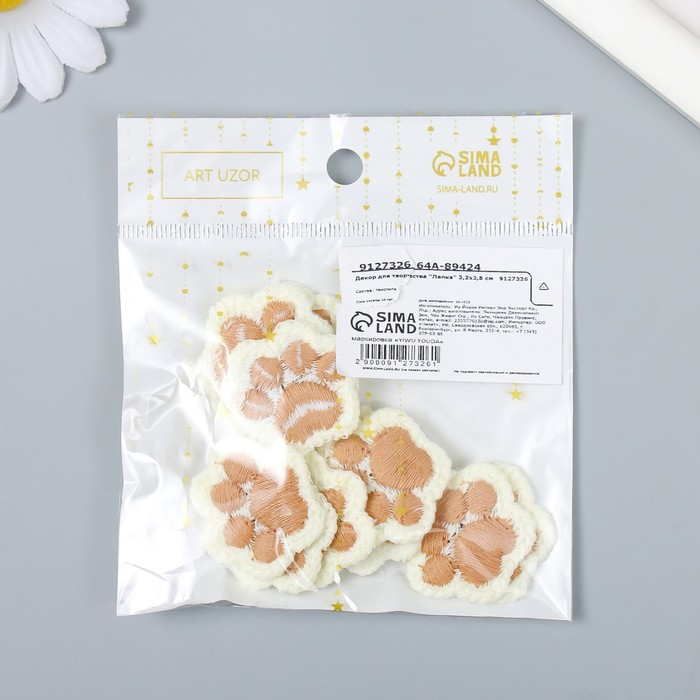 Декор для творчества текстиль вышивка «Лапка», 3.2×2.8 см