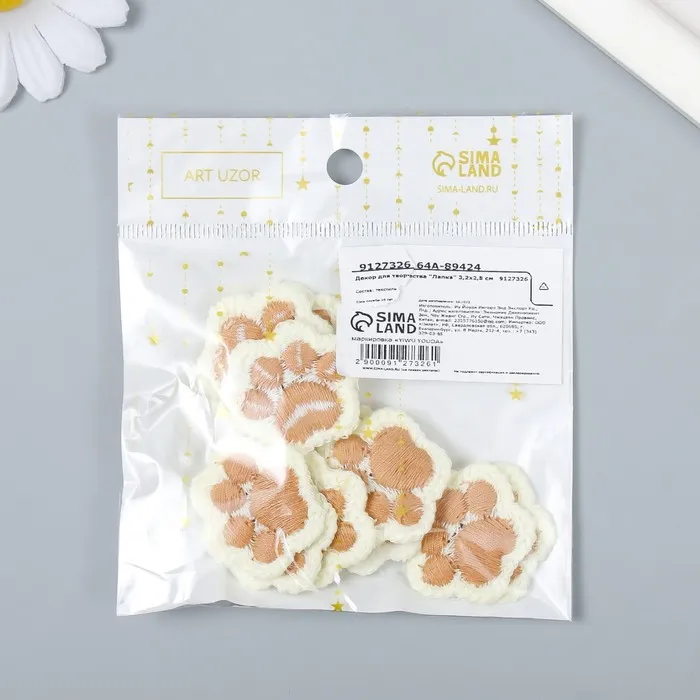 Декор для творчества текстиль вышивка «Лапка», 3.2×2.8 см — Характеристики