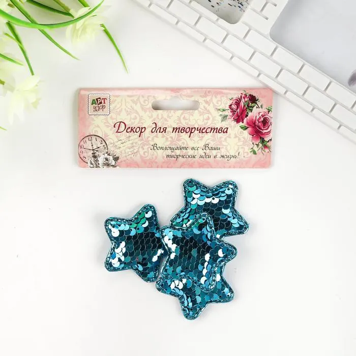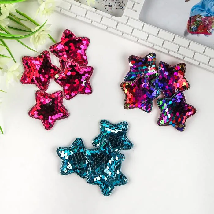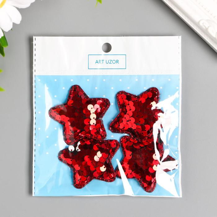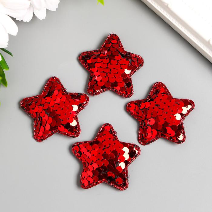 Декор для творчества текстиль «Звёзды», пайетки, набор 4 шт., 5×5 см, МИКС — Характеристики