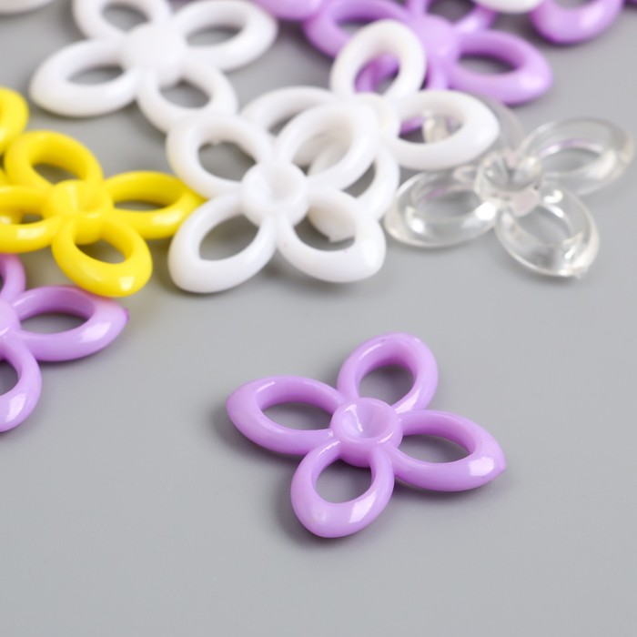Декор для творчества «Цветок. Жёлтый, фиолет, белый и прозрачный», набор 20 г, 2.8×2.8×0.4 см — Характеристики