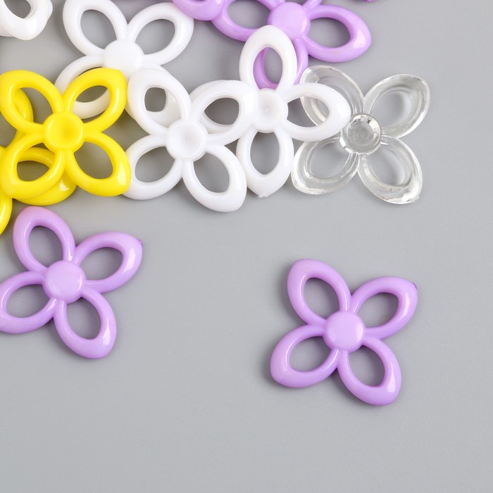 Декор для творчества «Цветок. Жёлтый, фиолет, белый и прозрачный», набор 20 г, 2.8×2.8×0.4 см