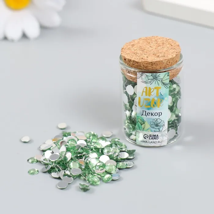 Декор для творчества в бутылочке «Стразы. Светло-зелёный», набор 500 шт., d=0.5 см, 7×2×2 см
