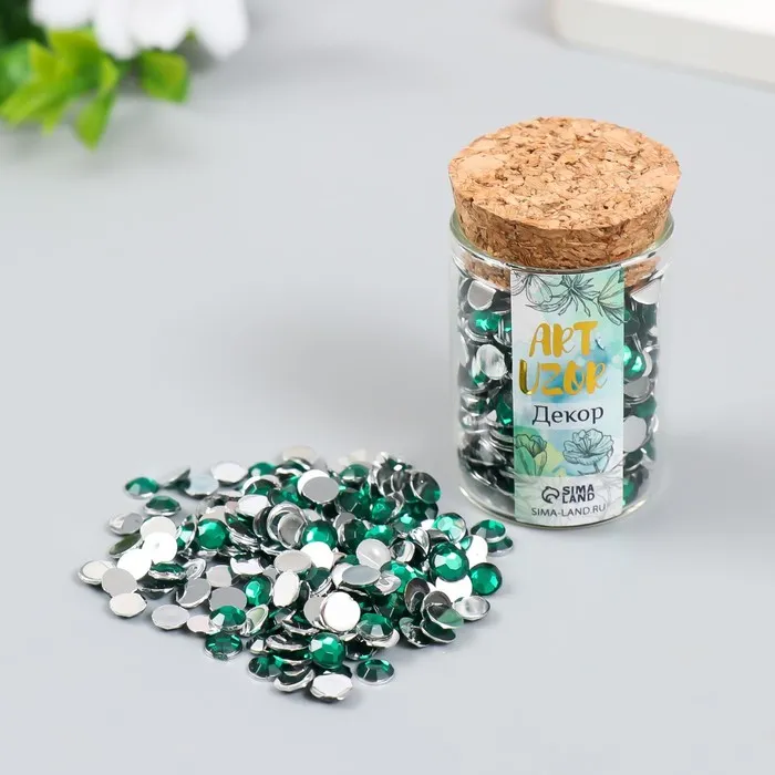 Декор для творчества в бутылочке «Стразы. Тёмно-зелёный», набор 500 шт., d=0.5 см, 7×2×2 см