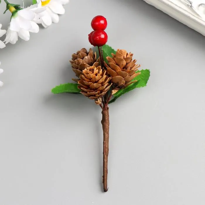 Декор для творчества "Веточка с 3-мя шишками и 3-мя ягодками" 7,5 см — Характеристики